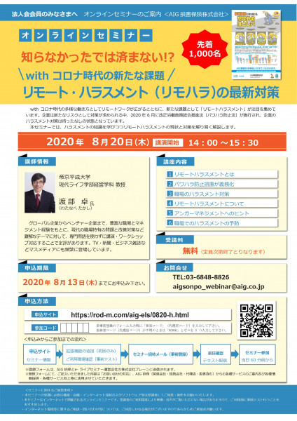 AIG損害保険様より、オンラインセミナー開催のご案内です。