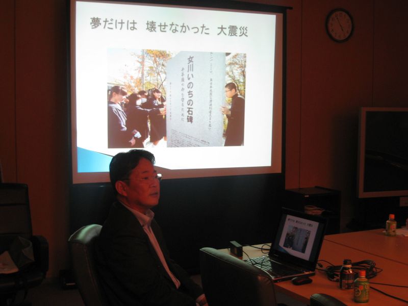 1日目は石巻ルネッサンス館にて、当部会員の山田廣康幹事に東日本大震災についての講話会を開催しました。