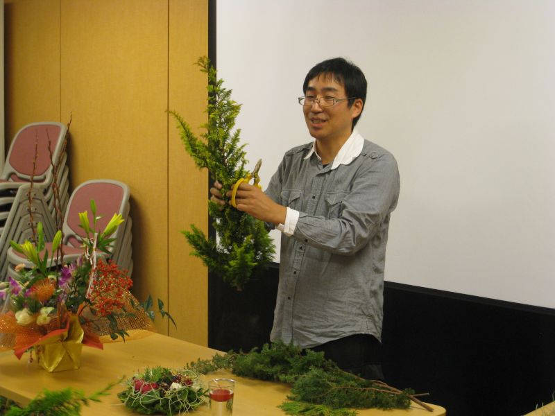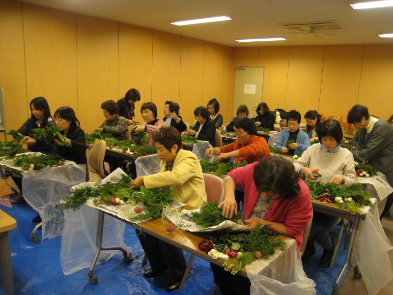 講師に㈲大森花園の大森 憲市 氏を迎え、クリスマスリースとお正月飾りの2作品の制作に取り組みました。