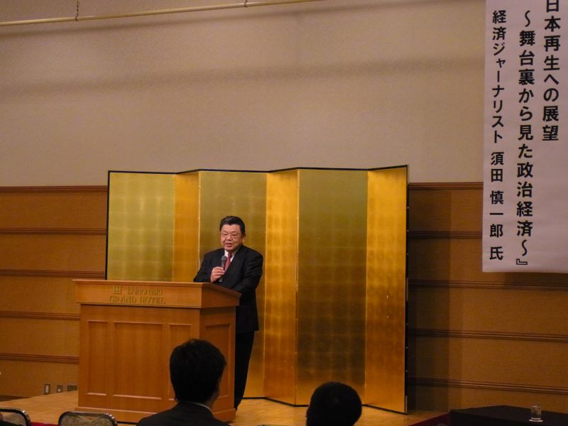 第一部の新春講演会講師には、経済ジャーナリストとしてテレビ番組他多方面でご活躍中の須田 慎一郎 氏に「日本再生への展望〜舞台裏から見た政治経済〜」の演題でご講演をいただきました。 弊会会員様のほか、一般聴講の方も多数お越しいただき会場はほぼ満席となる盛況ぶりでした。