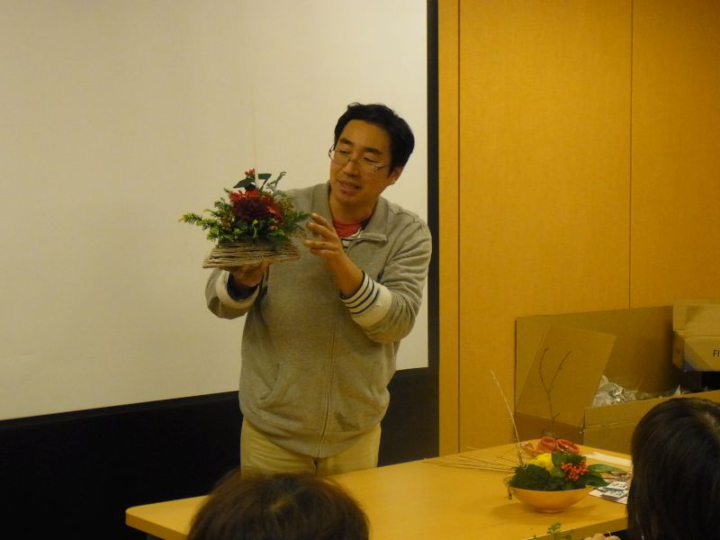 大森氏には毎年、本教室の講師をご担当いただいております。回を重ねるごとに豪華になるアレンジメントフラワーに、毎回参加されている方は驚いていました。