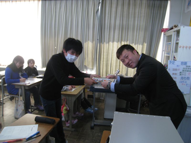 最後に皆さんにますます勉学に励んでいただけるように、鉛筆やノートなど法人会オリジナルグッズと石巻間税会さんご提供のクリアファイルなどをセットにしてプレゼントしました。