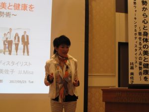 続いて公開講演会が開催され、姿勢ウォーキング&ボディスタイリストの比嘉美佐子氏を講師にお迎えし「姿勢から心と身体の美と健康を〜魅せる大人の姿勢術」と題して美しい姿勢や健康を保つ方法などをご指導いただきました。