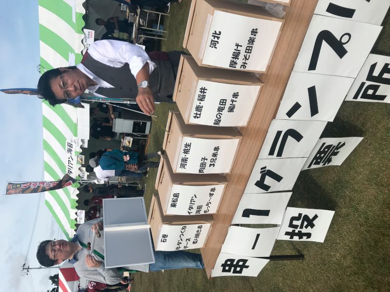 本イベントは石巻JCが主催し、石巻市・東松島市・女川町の魅力を楽しみ、地域の魅力を再発見してもらおうというテーマのもと、石巻焼きそばや東松島ののりうどん、さんまつみれ汁などの飲食ブースが並び、各商工会青年部が地元地区の特産品を串にして競う「串―1グランプリ」が開催されるなど楽しいイベントでした。