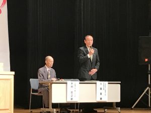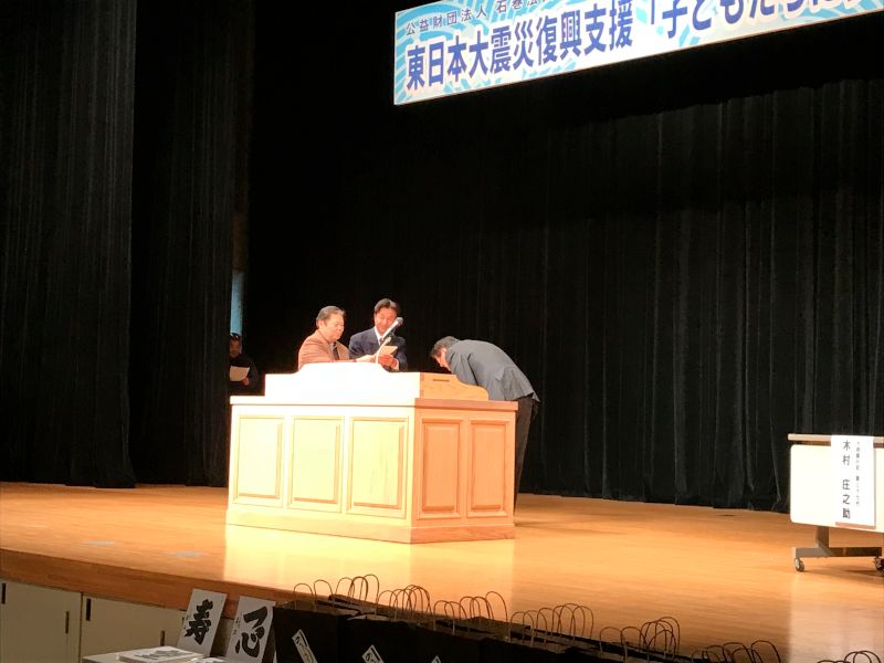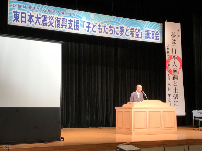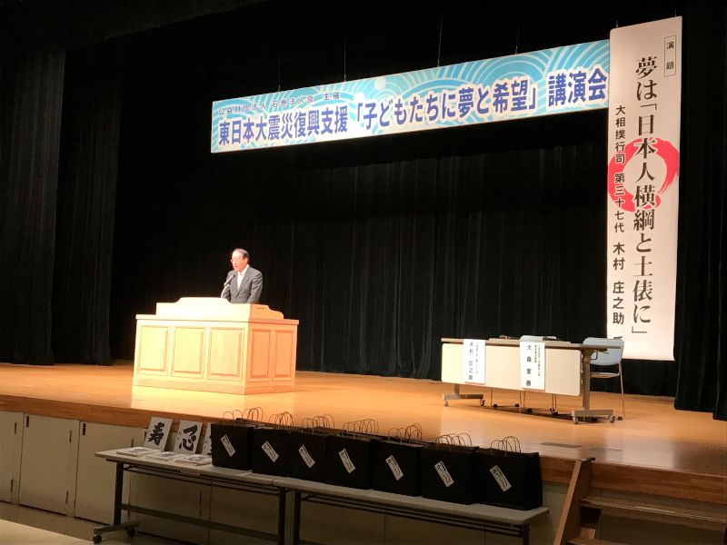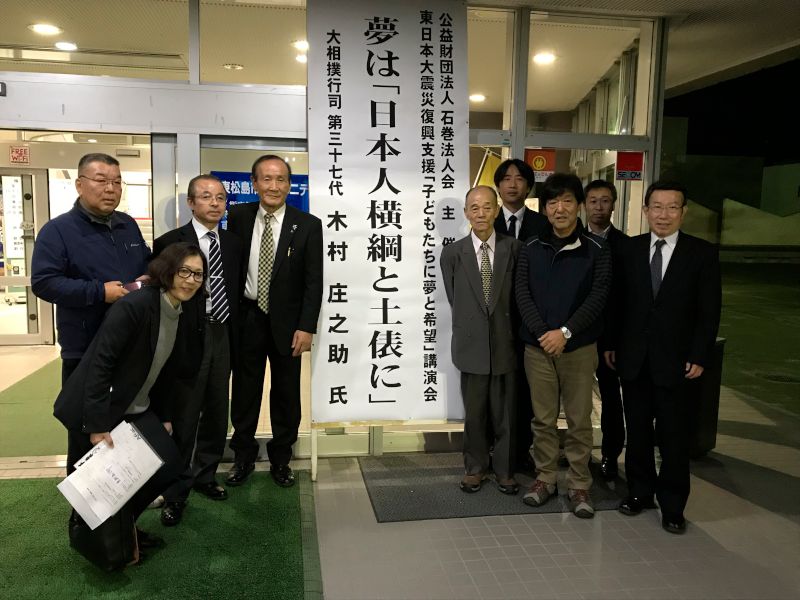 平成29年10月25日(水)東松島市コミュニティーセンターにて、東日本大震災復興支援「子供たちに夢と希望」講演会、大相撲行司第37代木村庄之助氏講演会「夢は日本人力士と土俵へ」を開催し約160名の皆様にご参加をいただきました。