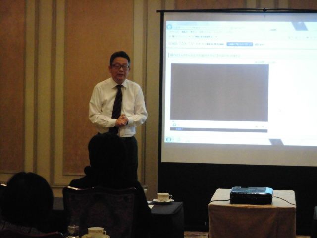 国税庁ホームページをスクリーンに投影し、実際に動かし、動画なども用いながらホームページな便利な活用方法についてご説明をいただきました。