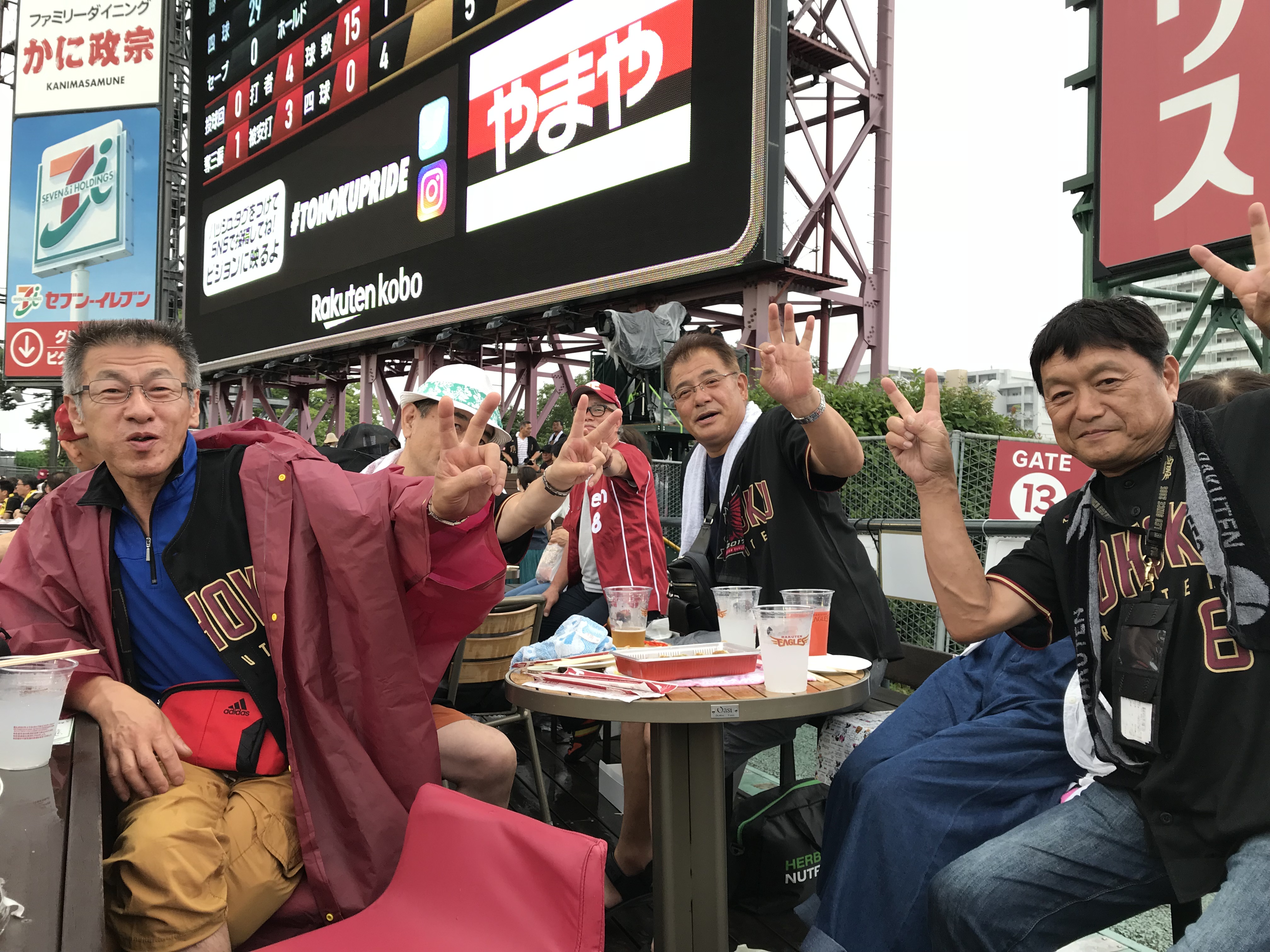 今年はあいにくの雨模様でしたが、本バスツアー初の「楽天が勝利」しましたので参加者の皆さんも応援に熱が入り、十分にお楽しみいただけたのではないかと思います。