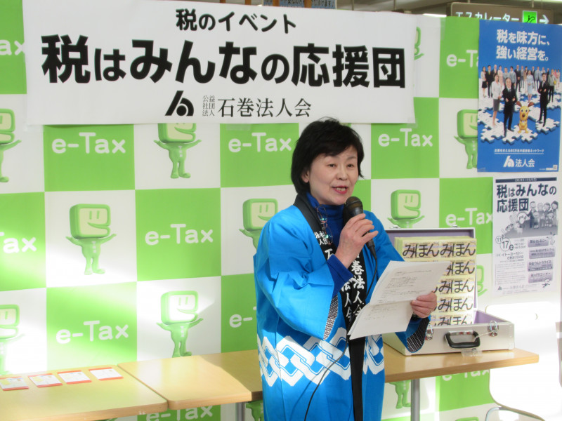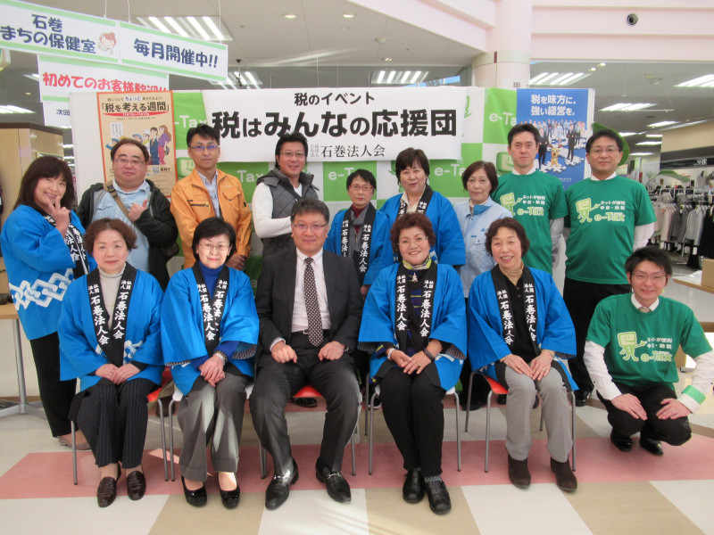 女性部会では、平成30年11月17日(土)イトーヨーカドー石巻あけぼの店様のご協力によりフードコート側特設会場にて、今年も税を考える週間イベント「税はみんなの応援団」を開催し、多くのご家族連れの方にご来場いただきました。