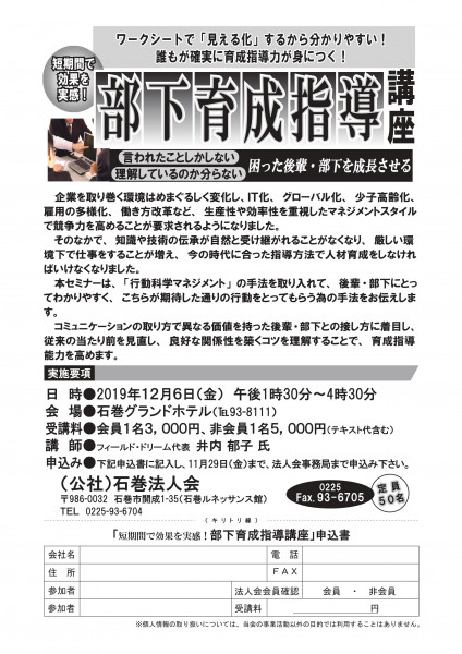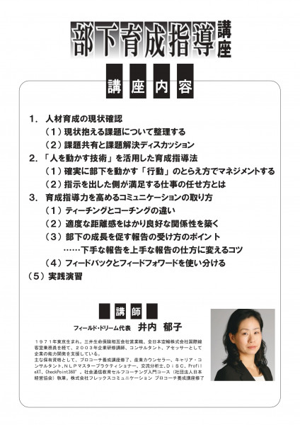 下記の日程にて、「部下育成指導講座」を開催致します。