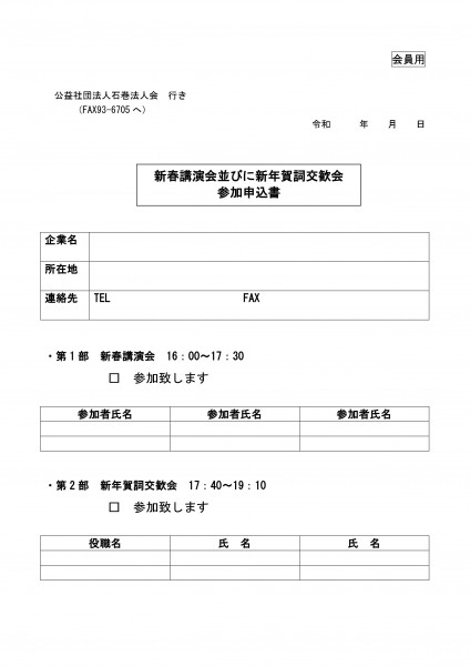 ■第2部 賀詞交歓会 17:40〜19:10 / 参加費 5,000円(振込のみ受付)