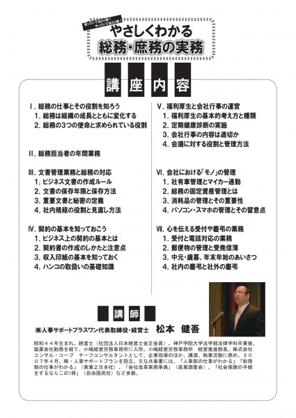 知っていて当たり前!やっていて当たり前!「やさしくわかる総務・庶務の実務」セミナーを下記の日程で開催いたします。