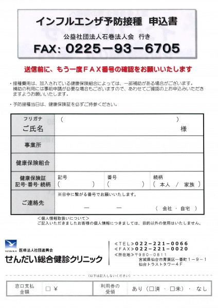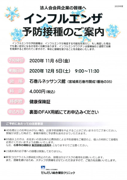 毎年開催の「インフルエンザ予防接種」の開催についてご案内です。