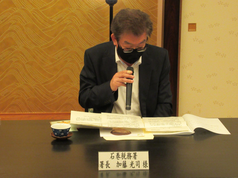 また、本日をもって2年間の任期を終えた加納部会長が「コロナの影響により青年部会活動が大きく制限されましたが、皆さんのご協力により租税教室の開催などできる限りの活動を継続できたことに感謝しています」と述べ、柳橋新部会長へバトンタッチされました。