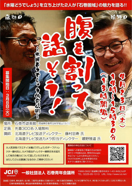 令和4年4月23日(土)石巻市遊学館にて、一般社団法人石巻青年会議所主催「腹を割って話そう!」~水曜どうでしょう的発信術~を開催します。