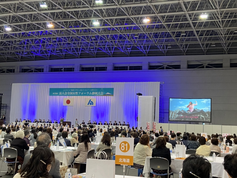 令和4年4月14日(木)静岡市のツインメッセ静岡にて「第16回全国女性フォーラム静岡大会」が開催され、当部会より8名が参加しました。大会は、各種の新型コロナ感染症拡大防止策を万全に講じた上で開催され、全国の法人会女性部会員約1,400名が参加しました。