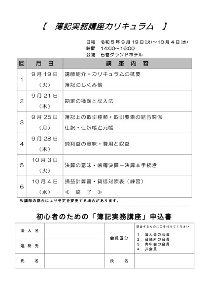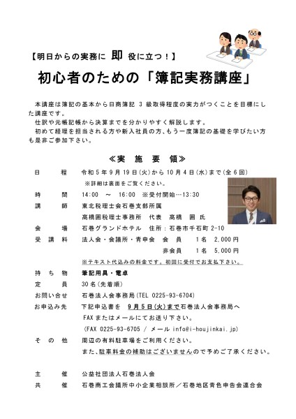 【ご案内】「初心者のための簿記実務講座」を開催します