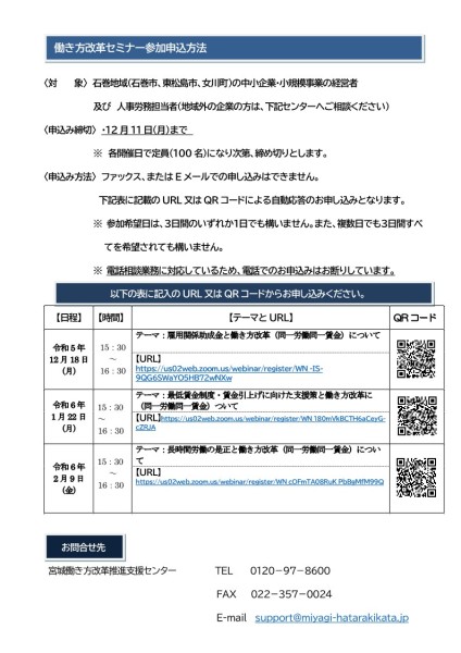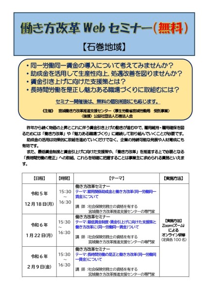 宮城働き方改革推進支援センター主催により、働き方改革WEBセミナーが開催されます。