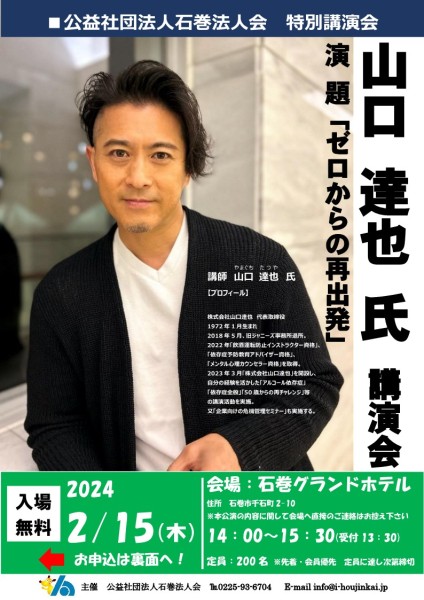 > 【お知らせ】特別講演会「山口達也氏講演会」を開催します