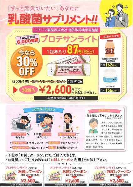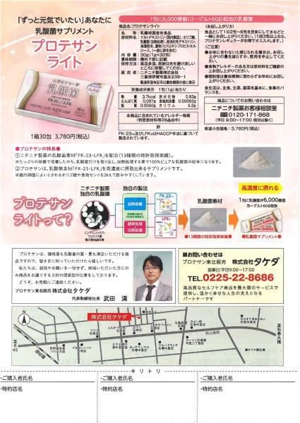 > 【チラシ同封サービス利用事業】㈱タケダ様 「プロテサンライト」のご紹介