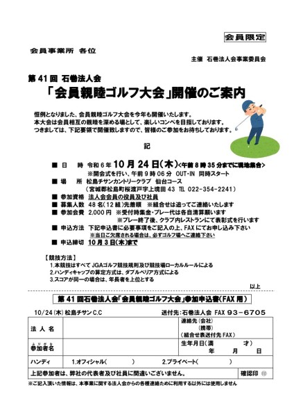 > 【ご案内】第41回会員親睦ゴルフ大会を開催します