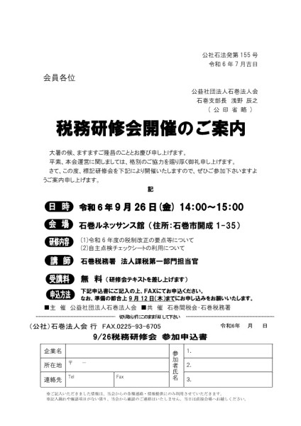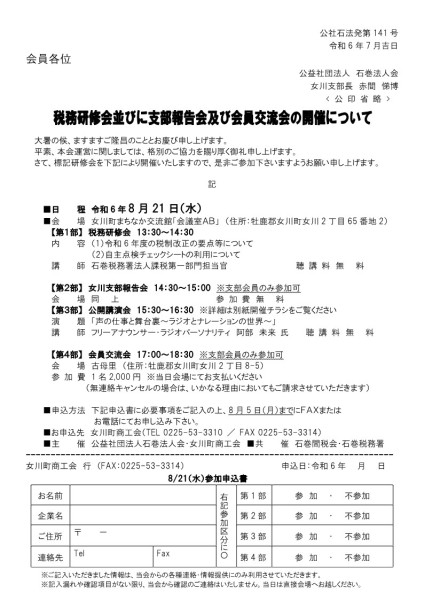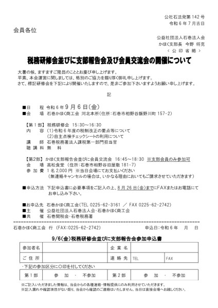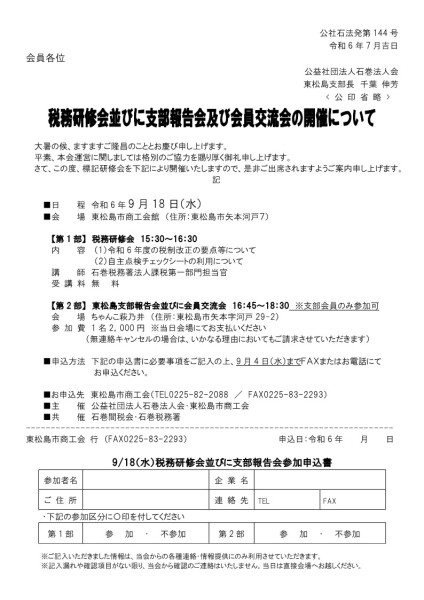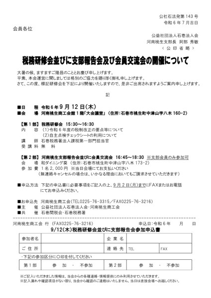 下記の日程にて、各支部主催の「税務研修会」を開催いたします。