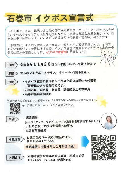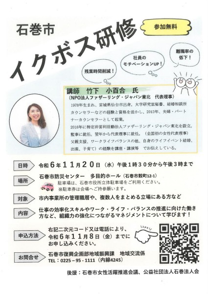 令和6年11月20日(水)にイクボス宣言式・イクボス研修が開催されます。