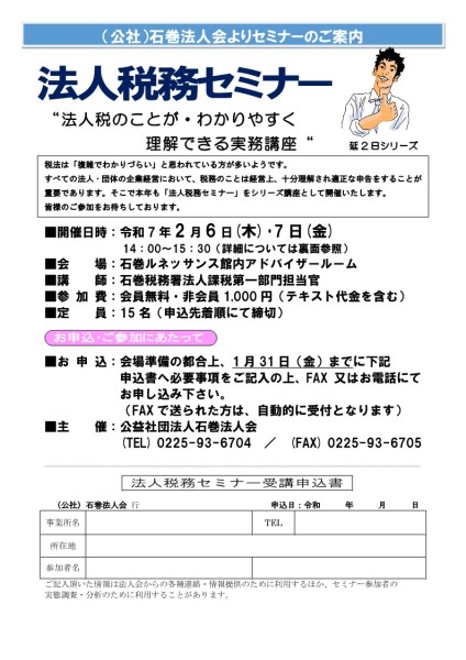 令和7年2月6日(木)・7日(金)の2日間、法人税務セミナーを開催します。