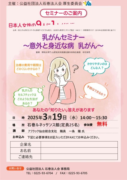 今回は受託会社でありますアフラック生命保険株式会社様より講師のご紹介をいただき「意外と身近な病 乳がん」と題してお話をいただきます。