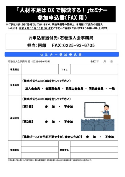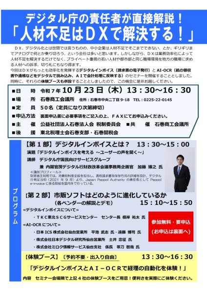 令和7年10月23日(木)石巻商工会議所にて「人材不足はDXで解決する!」セミナーを開催します。