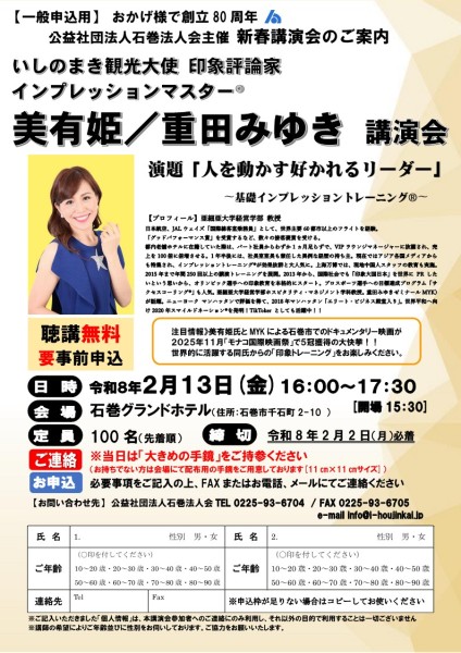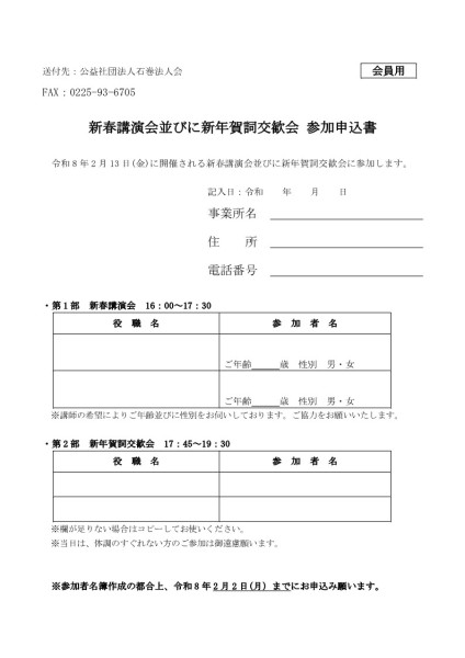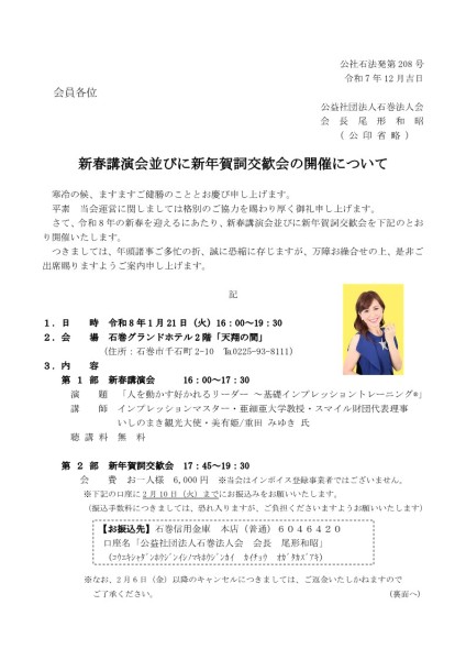 令和8年新春講演会並びに新年賀詞交歓会を開催いたします。