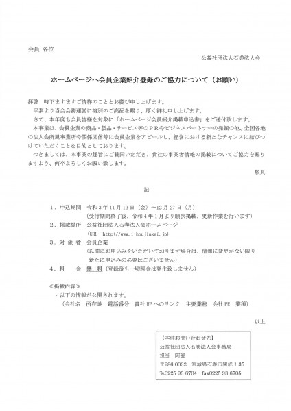 「ホームページ会員企業紹介」ご登録のお願いです。