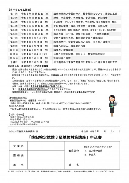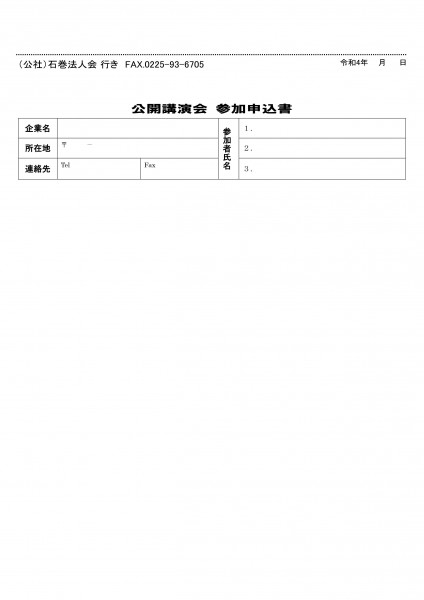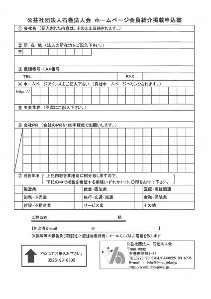 申込につきましては、下記の申込書に必要事項を記入し石巻法人会までご連絡ください。