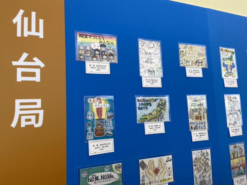 当日は管轄地区の各小学校6年生の皆さんが「税」をテーマに描いた絵ハガキを約200点展示するほか、石巻税務署様のご協力による「現金1億円の重さ体験コーナー」など様々な企画をご準備しております。