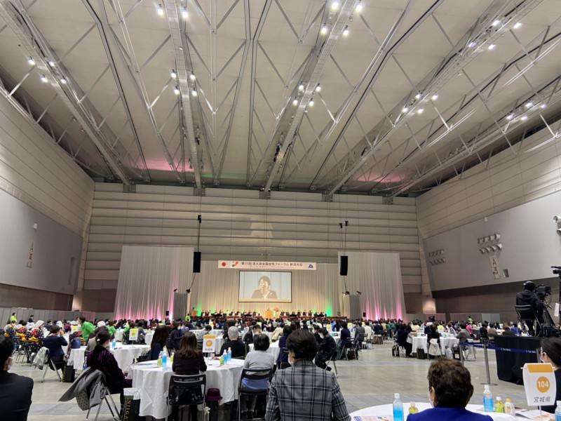 令和4年4月14日(木)静岡市のツインメッセ静岡にて「第16回全国女性フォーラム静岡大会」が開催され、当部会より8名が参加しました。大会は、各種の新型コロナ感染症拡大防止策を万全に講じた上で開催され、全国の法人会女性部会員約1,400名が参加しました。
