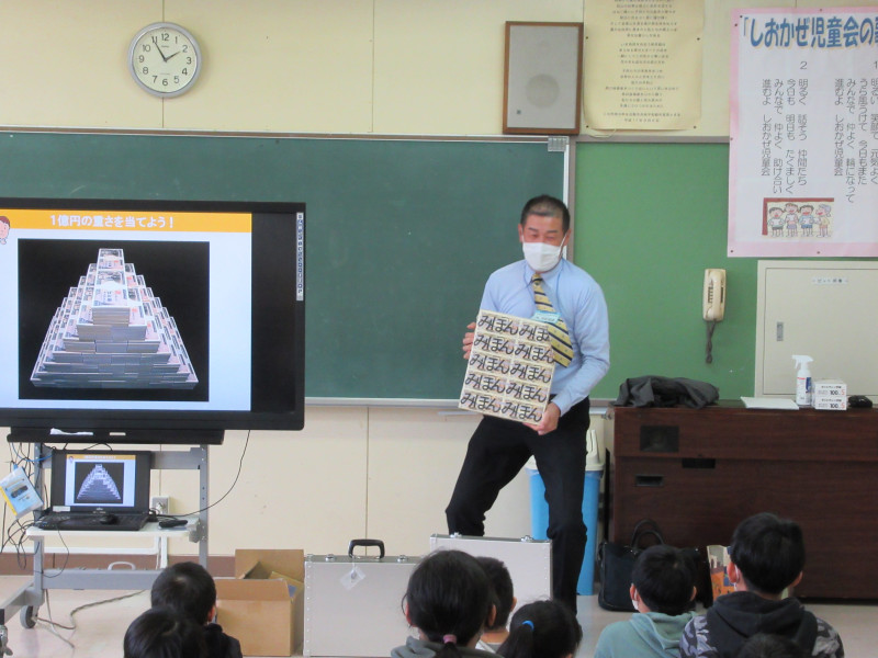授業の最後には実際の1億円とおなじ重さを体験していただき、楽しい租税教室となりました。
