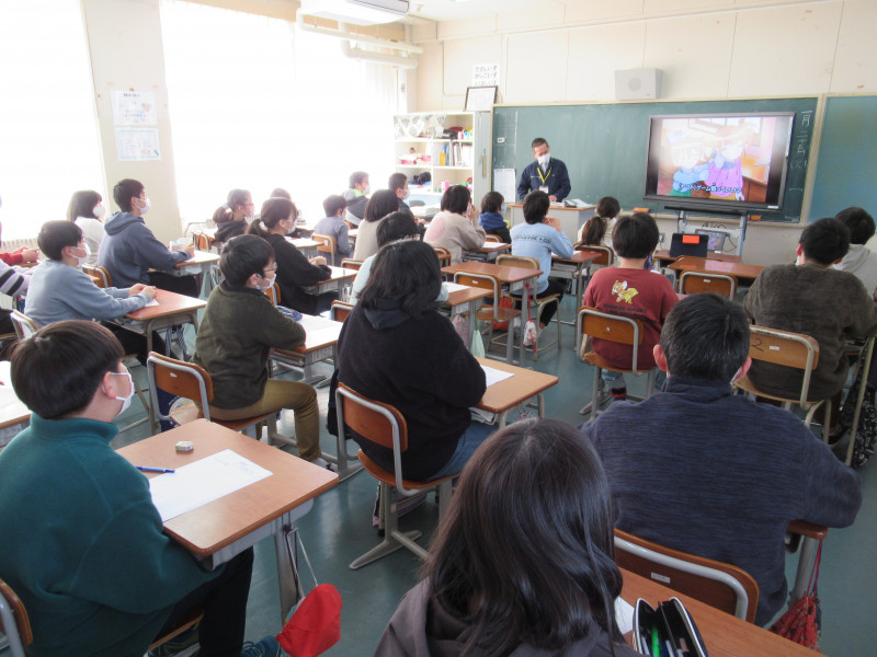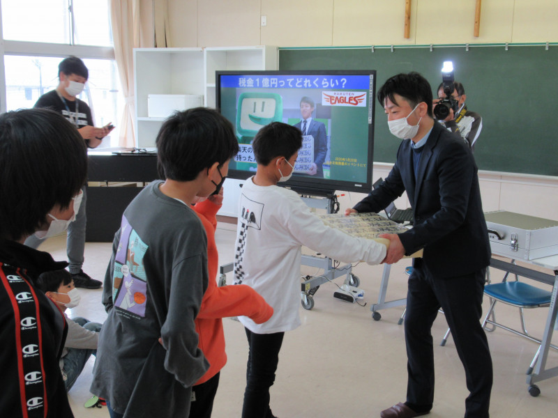 令和3年12月7日(火)石巻市立万石浦小学校にて租税教室を開催し、6学年の児童59名へ「税」の使途や大切さについて授業を行いました。