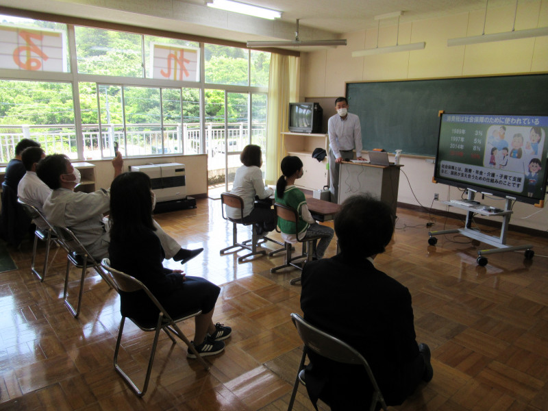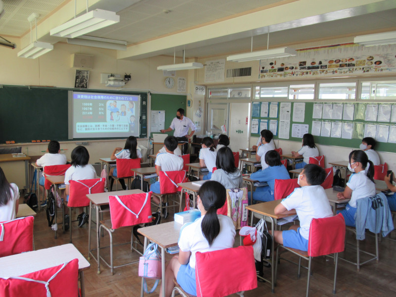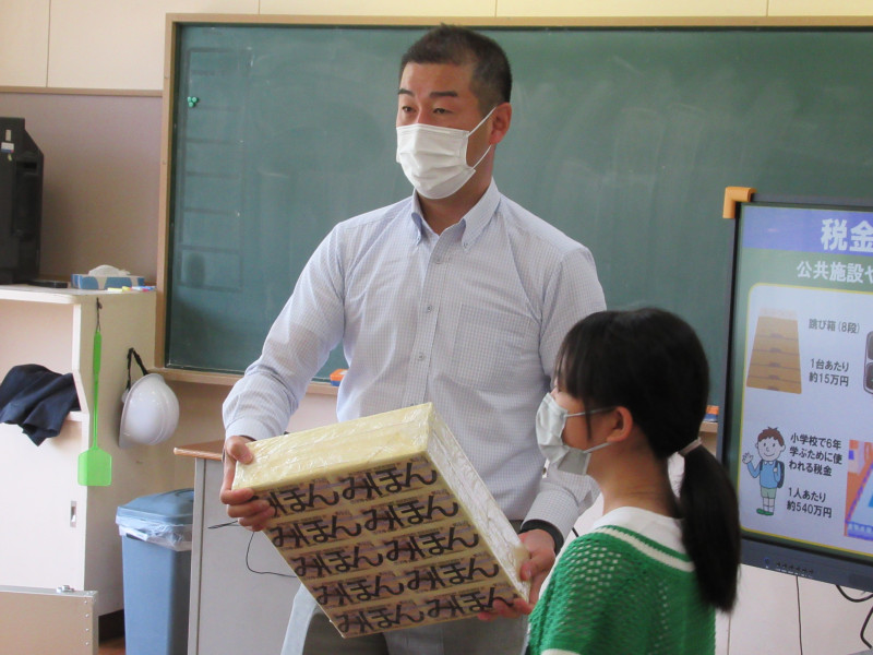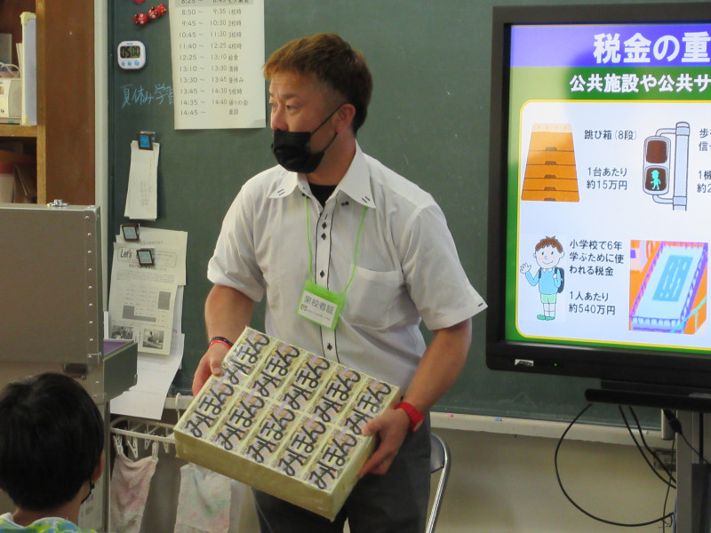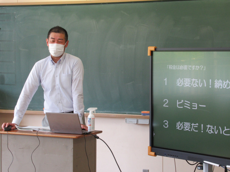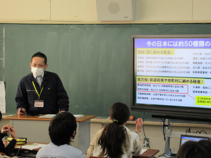 授業は担任の先生にもご協力をいただきながら、しっかりと税金の使途や役割についてご説明しました。