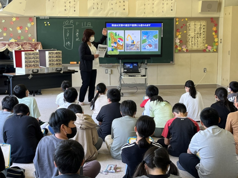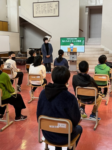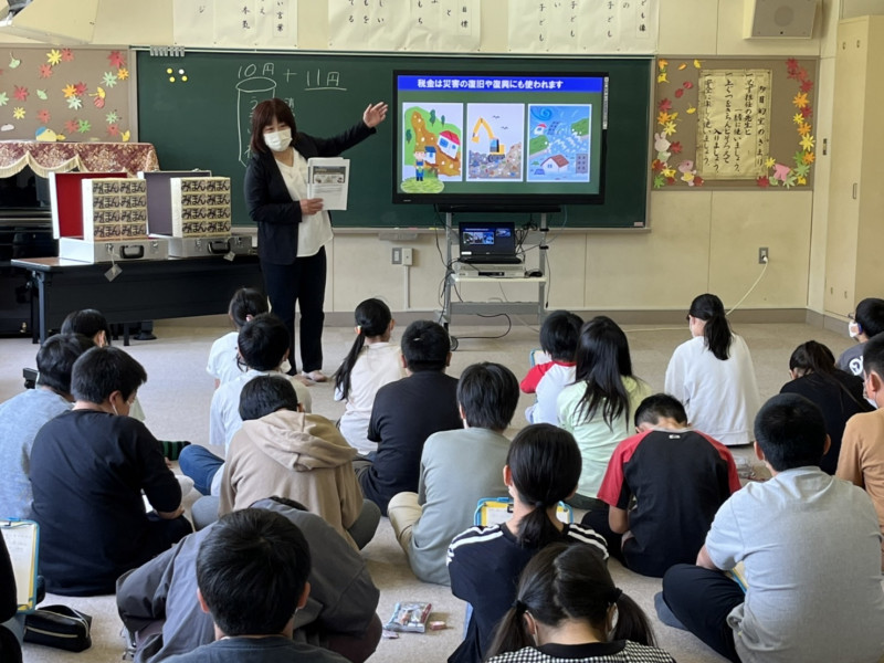授業後、児童さんからも「すごく分かりやすかった。税金の使途や大切さを良く理解できた」との感想をいただき、本活動の意義を改めて感じることが出来ました。