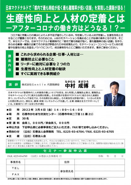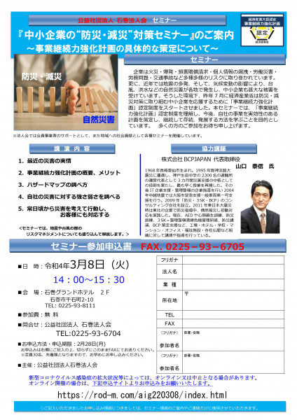 詳細については下記チラシをご確認いただき、石巻法人会までお申し込みください。