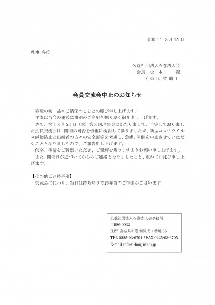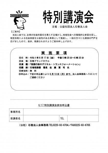 令和4年度定時社員総会と同日に石巻税務署長様を講師にお迎えして特別講演会を開催致します。