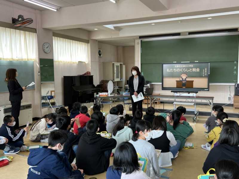 女性部会では令和4年4月19日(火)石巻市立須江小学校にて、本年度第1校目の租税教室を実施しました。