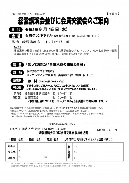 令和3年9月30日(木)石巻商工会議所1階会議室にて、令和3年度石巻地区税務関係団体協議会役員と石巻税務署との座談会を開催し、各構成団体より役員22名が出席しました。