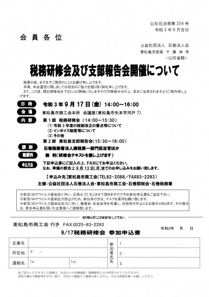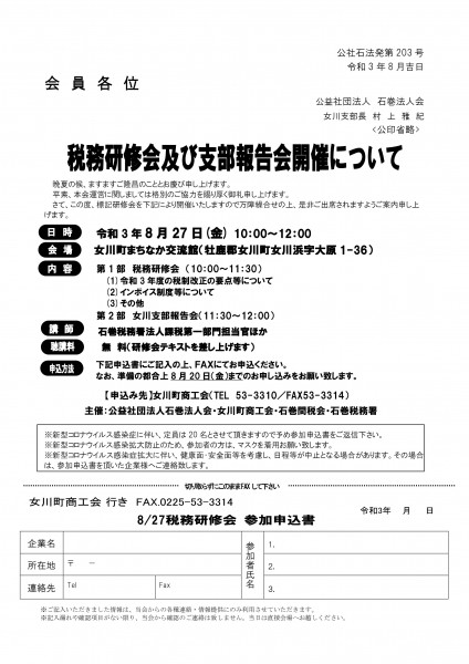 貴重な機会が失われ大変残念ではございますが、税団協としても引き続きできる限りの事業に取り組んでまいります。