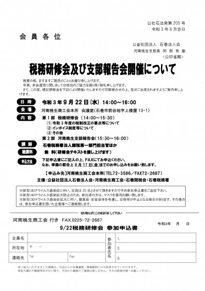 例年ですと座談会後に税務署様と役員とで懇談会がございますが、コロナの影響により今回も中止せざるを得ませんでした。