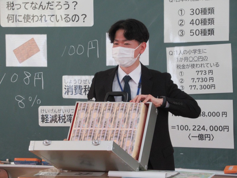 本年度は石巻税務署さんが「現金一億円を持ってみる!」とした体験ブースを担当し、女性部会では法人会が全国的に実施している「税に関する絵はがきコンクール」の展示などを行いました。